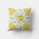 Belo travesseiro decorativo com buquê de rosas amarelas e folhas verdes têm um padrão uniforme em fundo branco.