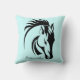 Belo Travesseiro decorativo Design de Desenho da Cabeça de Cavalo, com texto personalizável e cor de fundo.