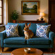 Almofada 💙 Belos Azulejos azuis, tamanho médio do azulejo