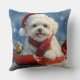 Almofada Bichon Frise Dog Sledge Deixe-o nevar no Natal