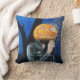 Um travesseiro decorativo de Halloween assustador, com o trabalho de arte pastel, "The Headless Biker". Esta ilustração mostra um fantasma de cabeça de abóbora vestindo uma jaqueta de couro fumando um cigarro em uma noite escura e fria de outubro. Arte original: Pastéis em papel. Copyright Dominic A. White. Todos os direitos reservados.
