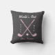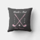 Looking for a stylish personalized golf themed pillow for women that doesn’t look boring? This chic pillow features bright pink golf clubs with white bows, and a crisp white golf ball on an elegant gray background. Personalize it with your name for a polished, personal touch.