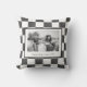 This pillow is ready to be customized with your own photo and your own custom caption. Your photo and caption are set inside of a black and white frame against a black and white checkerboard background. Nearly black squares with a painted look and plain white squares are arranged in an alternating pattern on the front and back of this throw pillow.