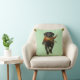 Black Labrador Retriever gundog and Pheasant on light green cushion. Shooting / hunting scene with a black lab gundog carrying a Pheasant. Cartridge shell top detail in the corners of the throw cushion. Perfect for those who are into hunting, shooting as well as black Labrador Retriever owners and handlers.