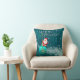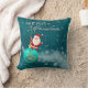 Help make your home or office more festive this holiday season with our adorable square throw pillow (different sizes and fabrics available) that features a darling Santa standing atop of teal-colored ornament, riding a wave of snowflakes.