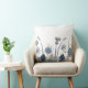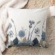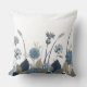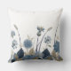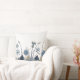 Design floral elegante com flores azuis e beges, com caules altos e folhas em fundo branco limpo, criando um aspecto macio, moderno e sofisticado.