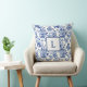 Almofada Blue Monogram French Country Throw Pillow