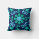 Almofada Blue Retro Style Floral and Sun Symbol Pattern