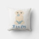 This pillow for baby boy has a modern and fun design with a baby boy illustration in blue shades.