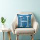 A detailed blueprint-style illustration of the letter H is presented against a vibrant blue background. The letter itself is rendered in white, with intricate details and precise measurements indicated by thin white lines. The back of the pillow includes a blue outline of the letter H set against a textured light beige background with a 4-line poem about the letter below.