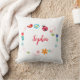 Ein hübsches Kissen für kleine Mädchen, mit niedlicher bunter Umrandung aus Blumen, Vogel & Marienkäfer, zum personalisieren mit Namen oder Wunschtext. Die perfekte Geschenkidee für Kinder.