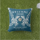 Bem-vindos ao travesseiro decorativo ao ar livre, contorno de corda de cinza leve em um fundo azul oceânico com texto branco. Você pode dizer aos barcos o texto para se adequar ao seu barco usando o recurso "personalizar este modelo".