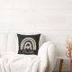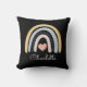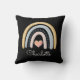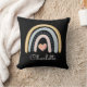 Cotovelo Boho personalizado Arco-íris com corações em travesseiro decorativo preto para o quarto ou dormitório de uma menina. O estilo de Trendy Boho para o dia a dia. Adicione seu nome nesta fonte de script de estilo manuscrito bonito e moderno.