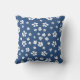 Boho retro travesseiro decorativo azul de flor branca.