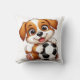Uma ilustração artística de um filhote lúdico abraçando uma bola de futebol, apresentando uma expressão doce e engajada em um cenário de luz. Perfeito para esportes ou projetos criativos de temas divertidos.