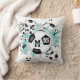 O travesseiro decorativo de futebol desta desportista apresenta uma "explosão" de esferas de futebol preto e branco de dimensões variadas e de cor clara, cinzas e formas de estrelas brancas - personalize com o nome do atleta, o monograma e o número de camisa na frente e no verso - katz_d_zynes