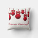 O Natal bonito descansa perfeito para decorar sua casa ou como um presente. O travesseiro do Natal caracteriza um fundo branco com suspensão de decorações vermelhas da bola do Natal com fita vermelha. O texto customizável é os cumprimentos da estação. Todos nossos produtos podem ser projetados para encontrar sem nenhum custo extra suas necessidades. Contacte-nos simplesmente através de nossa loja. Produtos de coordenação disponíveis: Apenas pergunte-nos!