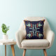A bold decorative throw pillow featuring an original geometric ornamental pattern in navy, rust, cream, and pale sage tones.