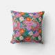Bold retro floral pattern throw pillow for colorful bedroom decor in a joyful dopamine decor style, featuring a reversible design with a bright vintage inspired floral print on the front and a warm orange coordinate on the back pulled directly from the orange tones in the artwork for a perfectly matched finish, with cool blue accents that keep the palette feeling fresh. This retro botanical look makes a statement in an eclectic bedroom or living room.