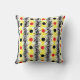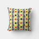 Travesseiro decorativo de Padrão de Bolinhas de Scribble abstrato projetado por Nisha Prabhu CuteHomeGifts. Padrão colorido de abstrato com riscas verticais pretas e bolinhas vermelha preta sobre fundo amarelo.