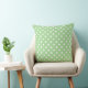 Um Travesseiro decorativo muito bonito ou Cushion com um padrão de grandes Bolinhas brancas sobre um fundo verde Apple. Parte da coleção Posh & Painterly 'Primavera Sunshine'.