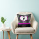 Travesseiro decorativo Cheerleading personalizado -- polkadots preto e branco, com um coração e um cheerleader no centro. Adicione seu nome!