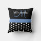 Almofada Bolinhas de Script de Monograma Azul Branco Preto