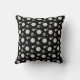 Belo travesseiro decorativo com bolinhas prateadas sobre fundo preto.