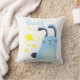 Um travesseiro personalizável de bebê com um belo coelho azul de desenho animado e pequenas estrelas amarelas. Você pode personalizá-lo facilmente para adicionar o nome do seu bebê.