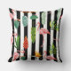 Bonito faixas brancas pretas com Travesseiro decorativo Flamingo Cactus