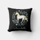 Um bonito travesseiro unicórnio com flores e folhas com fundo preto. Você pode personalizar este produto alterando o nome.