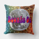 travesseiro decorativo de 20" x 20" com uma imagem de luzes de disco vermelhas, laranja, amarelas, verdes e azuis, uma bola de disco espelhada brilhante e "Boogie On" em letras vermelhas, laranja e roxa. O verso tem a imagem de luzes de discoteca apenas. Consulte travesseiro decorativo redondo de 16" e travesseiro de destaque de 12" x 16". Veja toda a coleção de Travesseiros Disco 70 no DÉCOR | Seção Travesseiros.