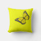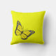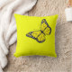 Este travesseiro caracteriza uma única borboleta em um fundo amarelo e em um design um pouco de diferente das características em cada lado.