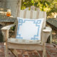 Um na moda clássico de decoração de casa ao ar livre com travesseiro com uma fronteira de estilo chave grega. Use as ferramentas de design para carregar suas próprias fotos ou adicionar texto para personalizar o design com seu nome, monograma ou citação favorita. Divirta-se criando seu próprio travesseiro decorativo pré-disquete moderno para completar qualquer decoração de varanda e pátio!