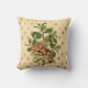 O travesseiro decorativo bonito apresenta uma ilustração botânica de florestas antigas, de cogumelos, flores e uma variedade de folhas, sobre um fundo cremoso de pêssego e de harlequina de ouro.