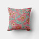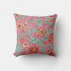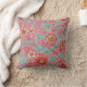 A rustic boho floral pattern in aqua, golden ochre, and cream on a textured raspberry red background. The stylized daisies and vine layout bring a folk-art feel, blending curved movement with vintage inspired warmth. Created for decorative pillows, this richly colored design adds texture and personality to eclectic or cozy home spaces.