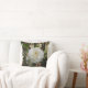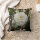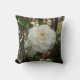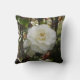 Almofada com flor branca grande de camélia contra fundo verde-escuro