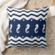 parte do oceano náutico temido branco de decoração no TRAVESSEIRO marinho SEA HORSE de um lado e marinho atrás. designs náuticas perfeitas para a vida costeira, decor do lago, decor do rio e mais...