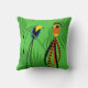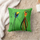 Arte vetorial colorida de um par de aves exóticas ficcionais do paraíso com penas longas de cauda e plumagem brilhante numa selva verde como o fundo.