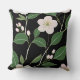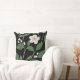 Uma ilustração floral dramática, com delicados florescimentos brancos e folhas verdes vibrantes, contra um elegante pano de fundo preto. Um design de alto contraste moderno perfeito para as peças de declaração
