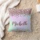 Um travesseiro com o Bing! Este travesseiro decorativo/almofada brilhante e brilhante tem um padrão brilhante de brilho cor-de-rosa espalhado por cima (por favor, note, impresso apenas) sobre um fundo bonito, de cor pastel macio. O design aparece em ambos os lados da almofada, e o nome personalizado pode ser facilmente personalizado ao personalizar este Modelo (acima).