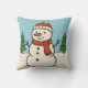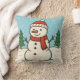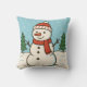 Travesseiro decorativo de Natal bonito com uma ilustração divertida de boneco de neve.