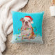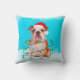 Bulldog Sentado na neve com o Travesseiro da Praça Santa Hat de Natal. Uma ideia perfeita para alguém que ama esta raça de cachorro.