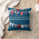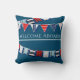 design de Bunting Náutico com embarcações de navegação, âncoras, cartazes difusos e faixas nas cores vermelho, branco e azul, típicas da vida náutica e costeira e dos temas marítimos.
