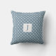 Um travesseiro boêmico, de dois lados, com um design de buquê floral azul, reproduzido a partir de uma cor de água original num dos lados e um monograma com bolinhas brancas sobre fundo azul. Este design evoca a sensação de verão e é o complemento perfeito para a decoração de sua casa ou como presente para um ente querido. Baseado em uma pintura de aquarela original, por © Lisa Audit Art. Envolva-se com arte animadora.