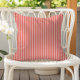 This design features a pattern of thin white vertical stripes on a burnt coral background. The perfect way to add a pop of color to your patio, porch or deck this summer!