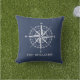 A almofada externa náutica apresenta uma bússola e tipografia moderna sobreposta em azul marinho. Faz um presente perfeito ou decoração para você mesmo.