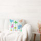 Fun multicolor folk art style butterflies fly over this sweet blue and white stripe background.