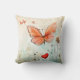 Este elegante design de travesseiro decorativo apresenta uma borboleta, flores de primavera e um coração vermelho - tudo em cores pastorais.