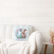 Decorative throw pillow featuring a sweet cow and the letter C on a soft blue heart pattern. Personalize it with your little one’s name for a charming nursery accent or unique baby shower gift.